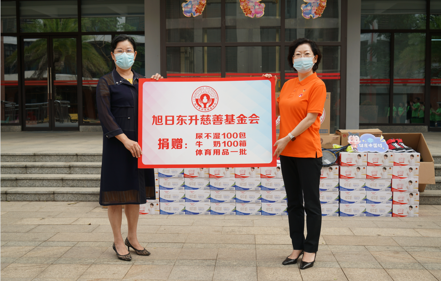 在孩子们的陪伴下,一个简短而有意义的捐赠仪式在福利院的院子里拉开了帷幕。